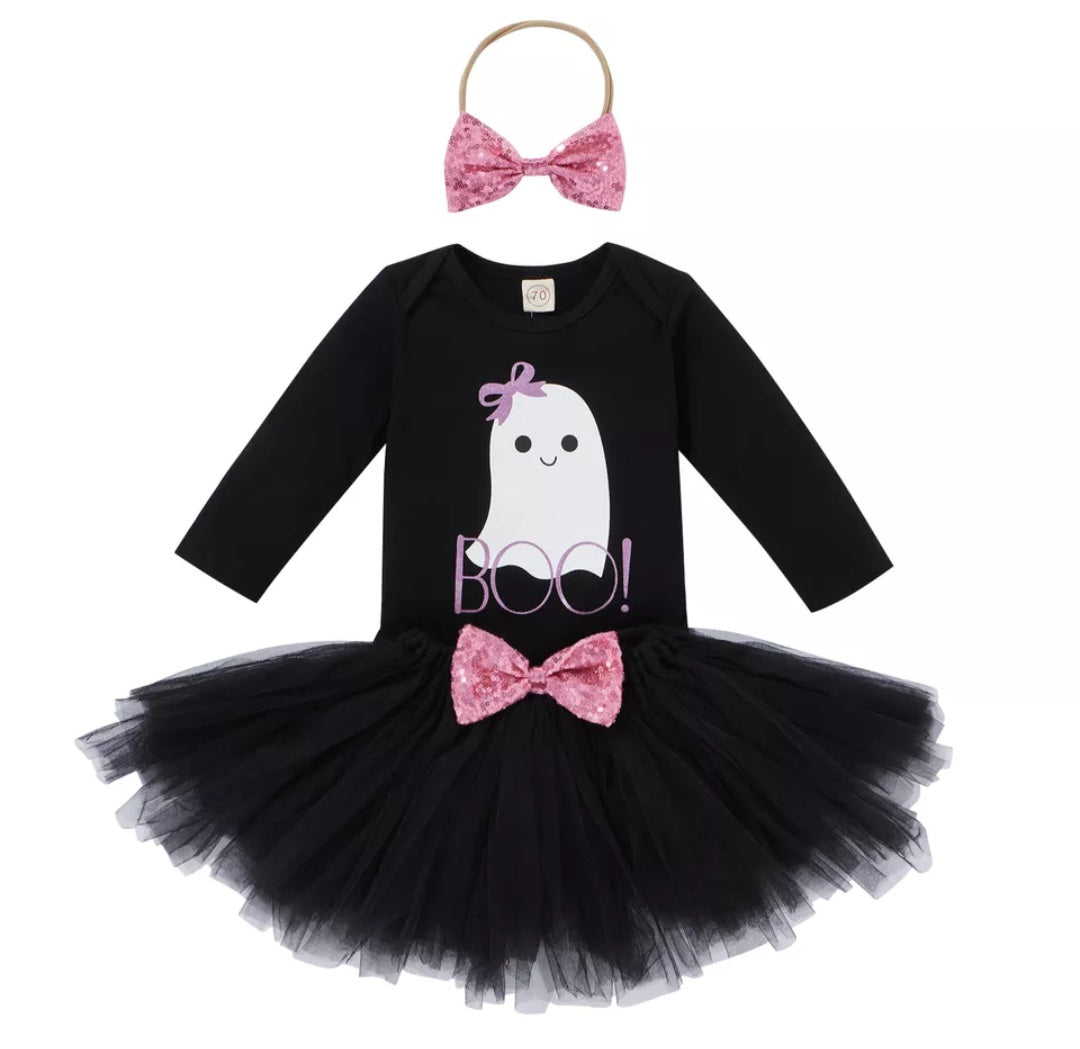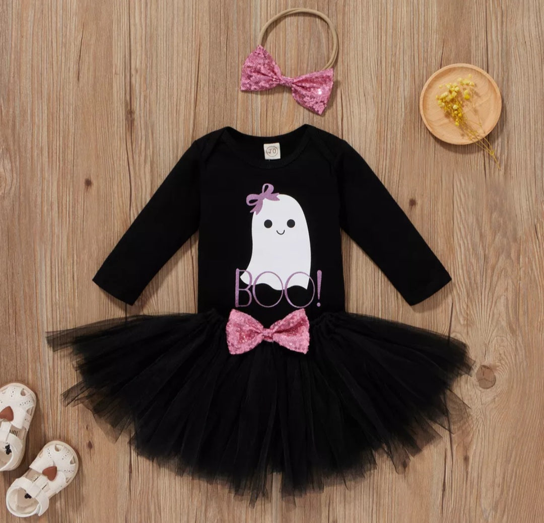 BOO Halloween Romper Tutu And Bow