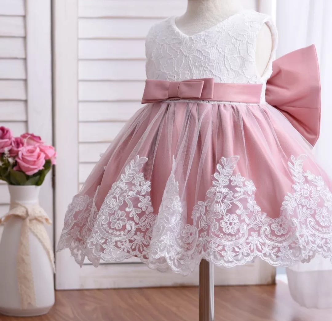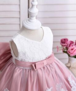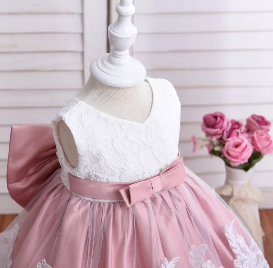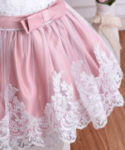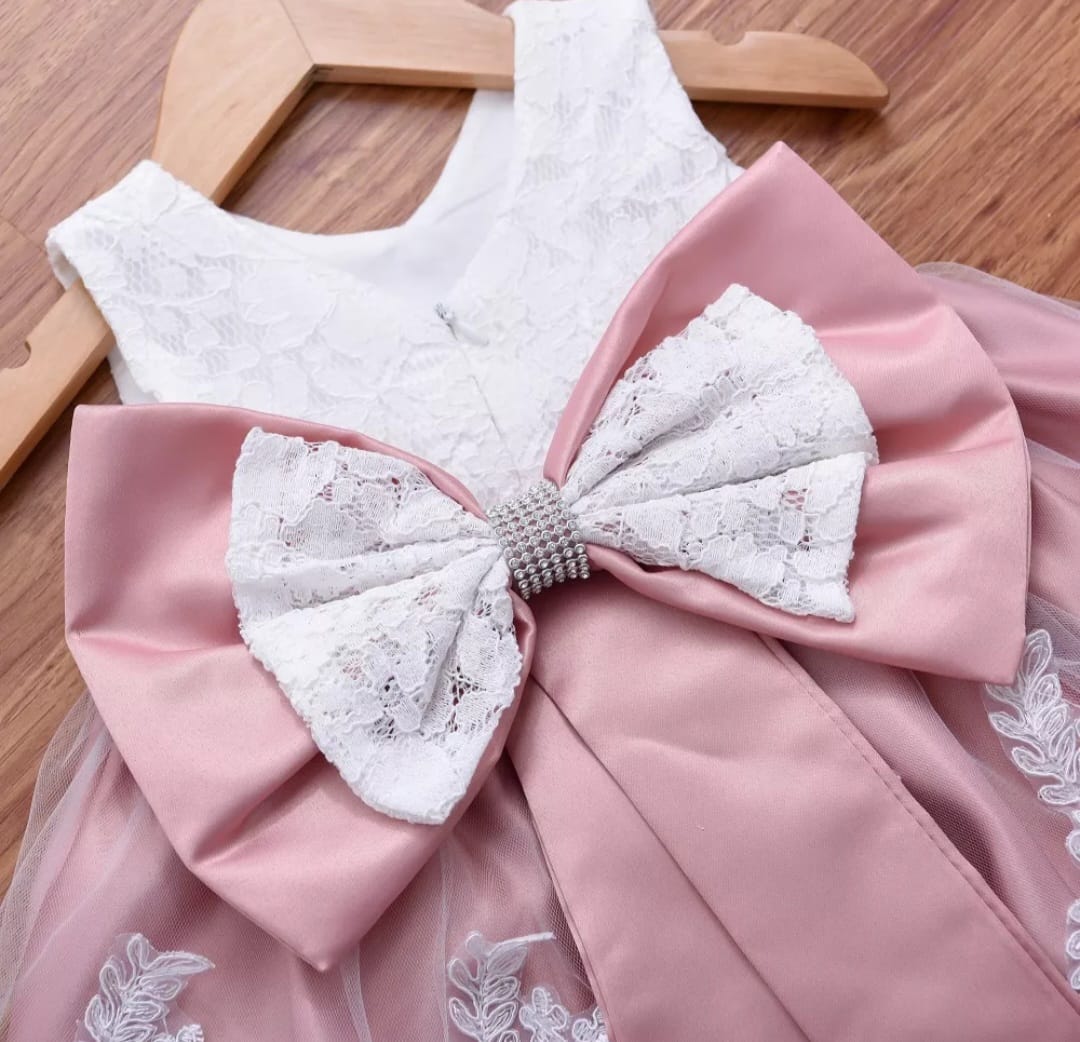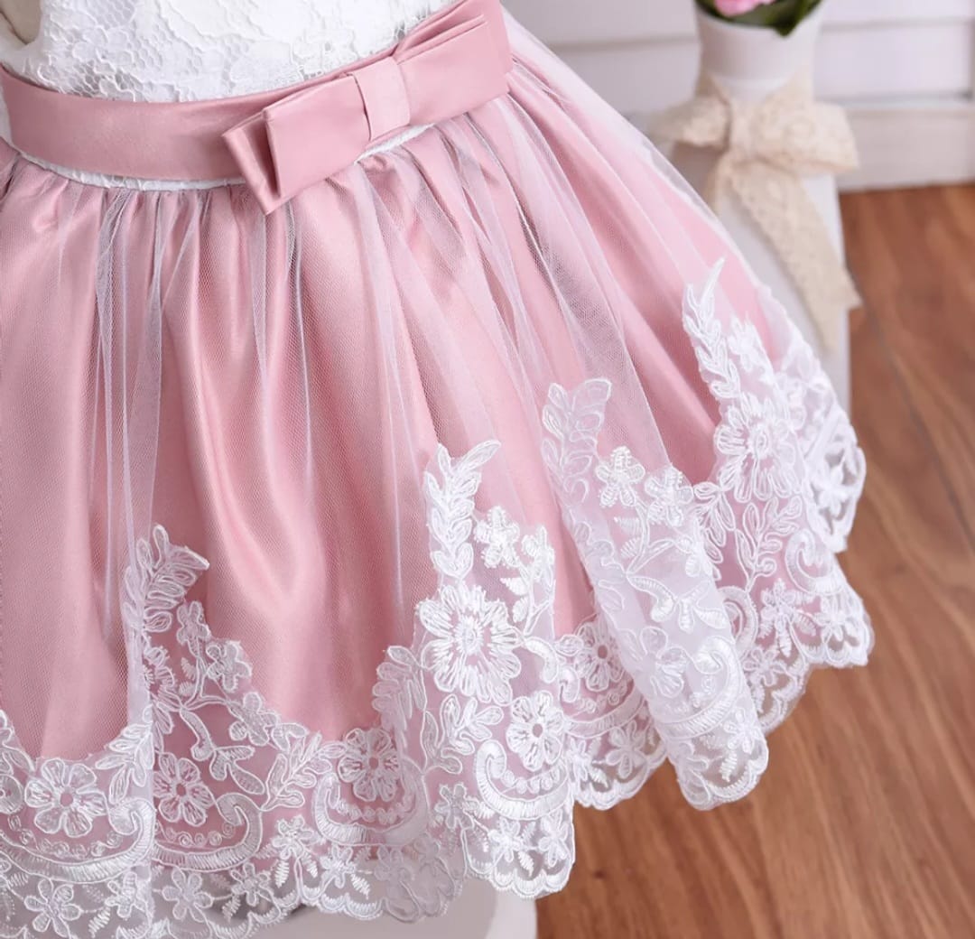 Dusty Pink & White Lace Formal Dress with Diamante Headband and Bow