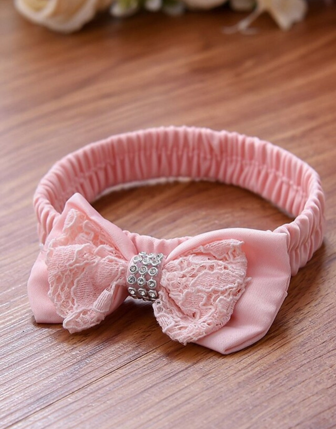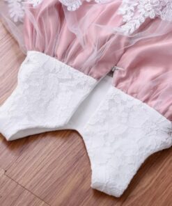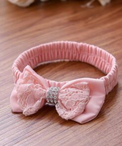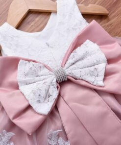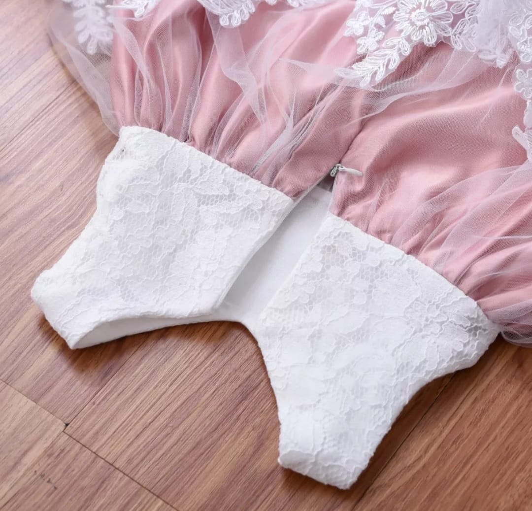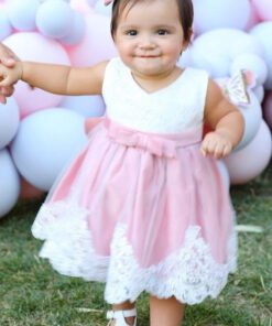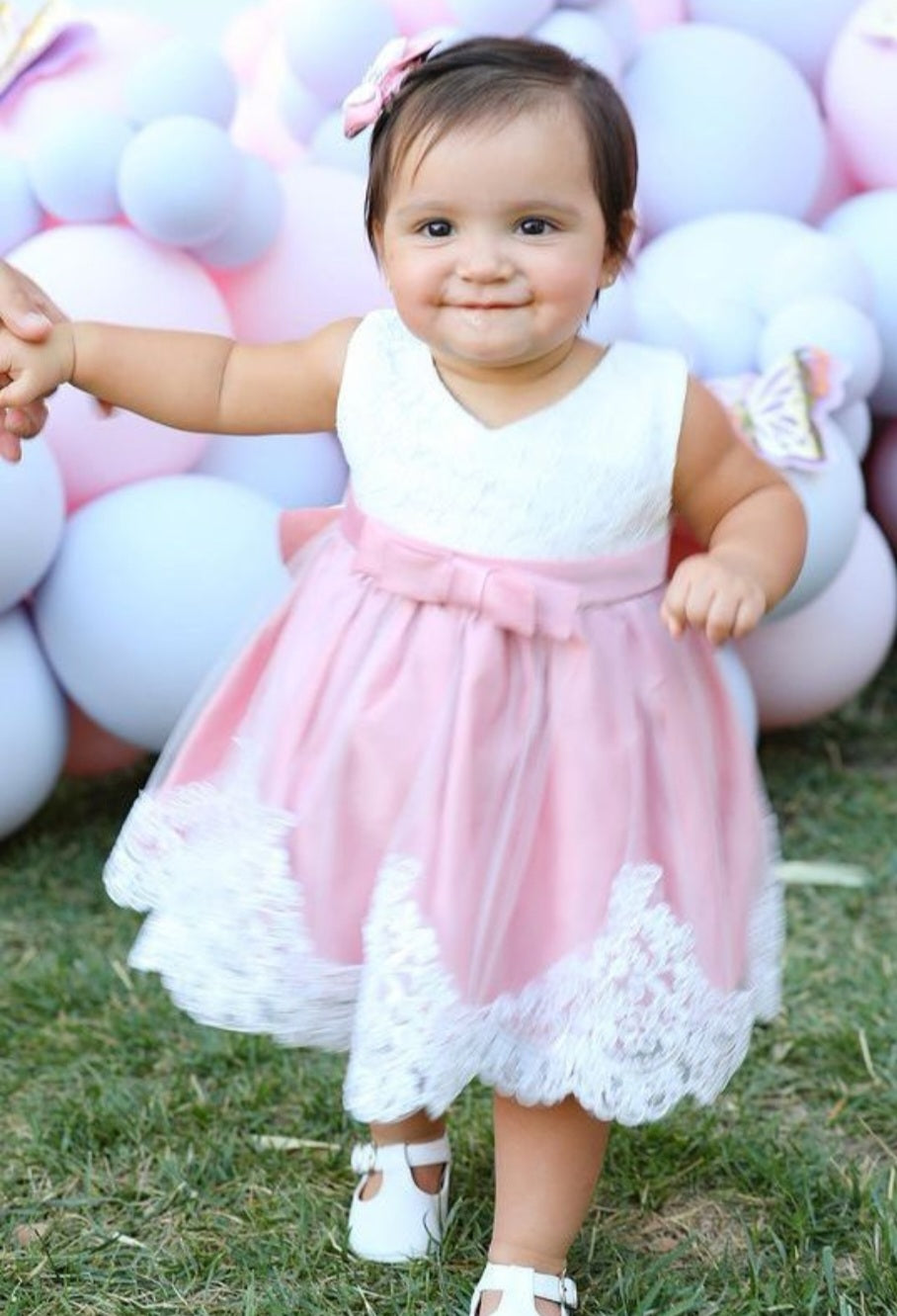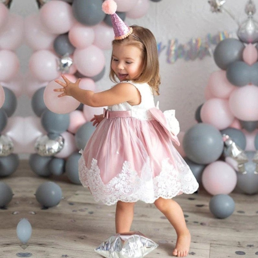 Dusty Pink & White Lace Formal Dress with Diamante Headband and Bow