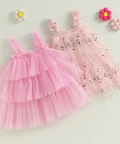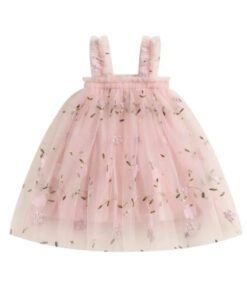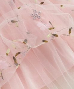 Peachy Pink Embroidered Floral Tulle Dress